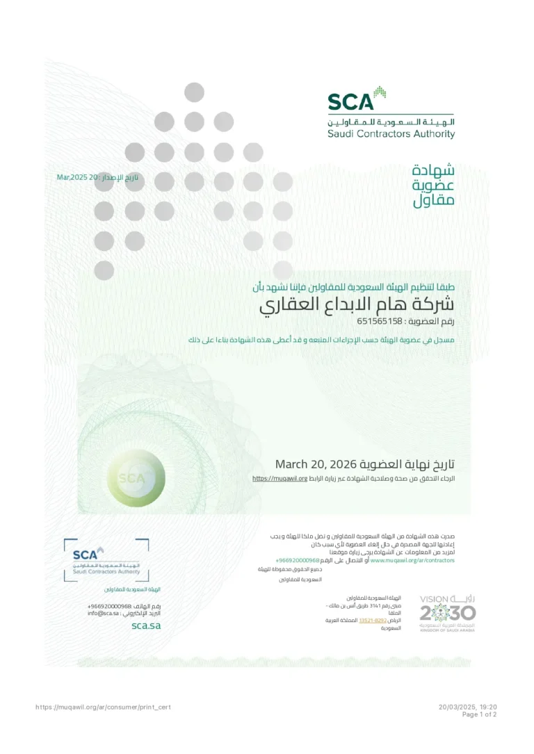 هام الابداع العقاري هي شركة سعودية تعمل في مجال التطوير والاستثمار العقاري، مرخصة رسميًا، وتمتلك خبرة واسعة وسجلًا من المشاريع الناجحة داخل المملكة